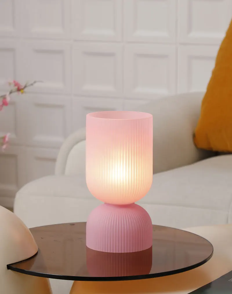 A estrutura delicada e o acabamento em tons suaves criam uma atmosfera relaxante, perfeita para quem busca uma decoração elegante e minimalista. Seja no quarto, na sala de estar ou no home office, essa luminária se destaca como um elemento de design que valoriza o ambiente.
